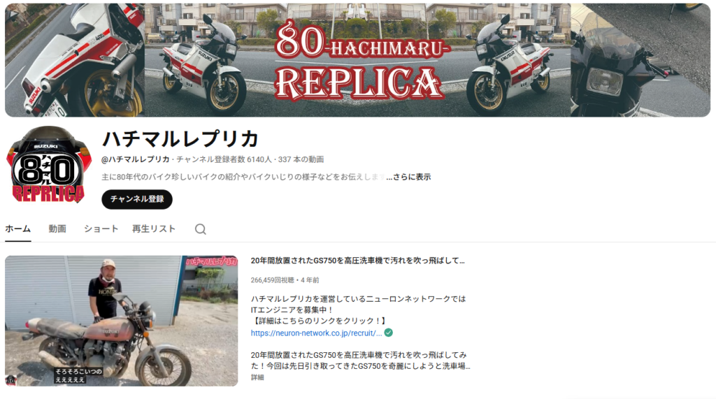 主に80年代のバイク珍しいバイクの紹介やバイクいじりの様子などをお伝えしているチャンネルです。