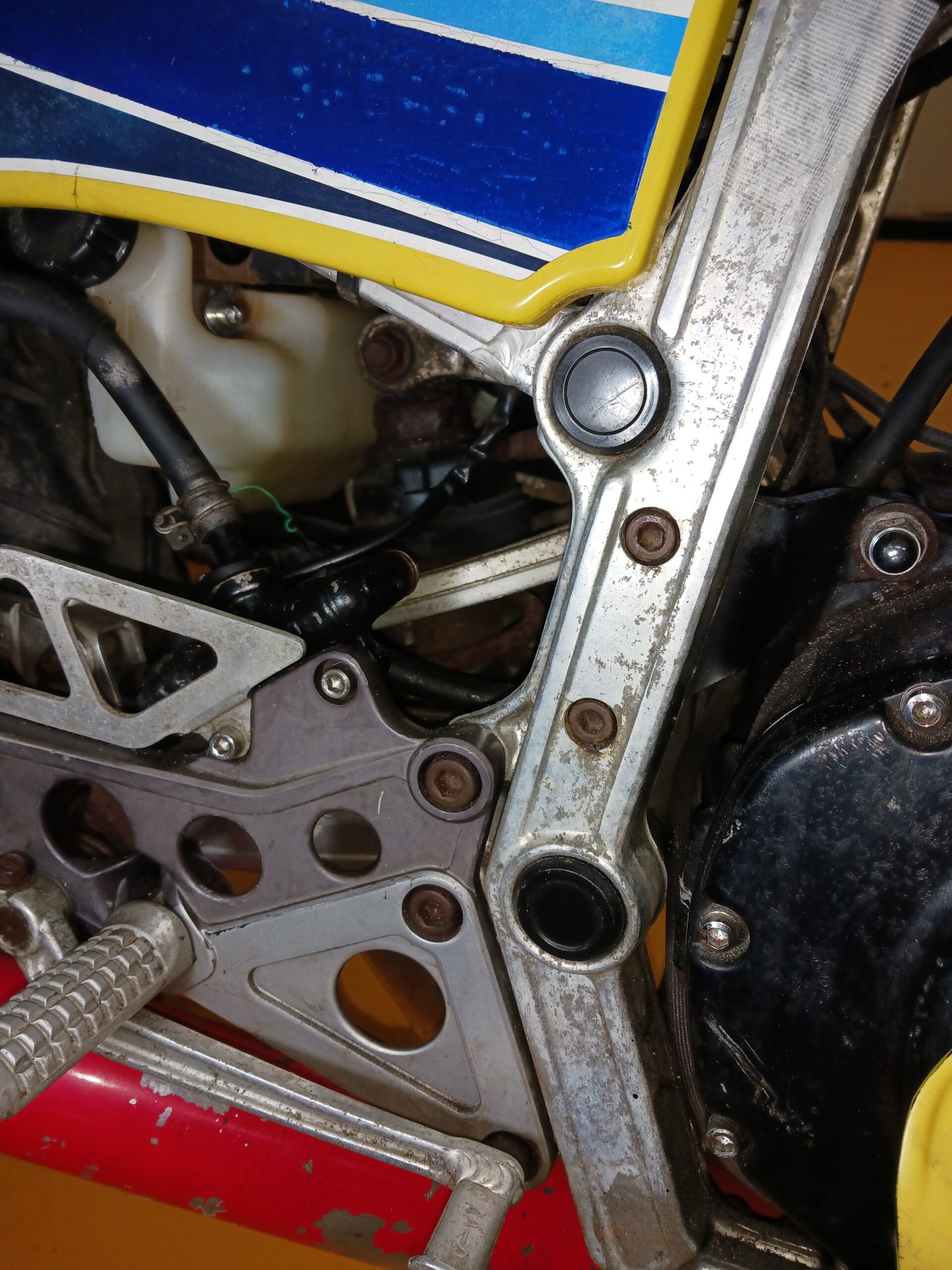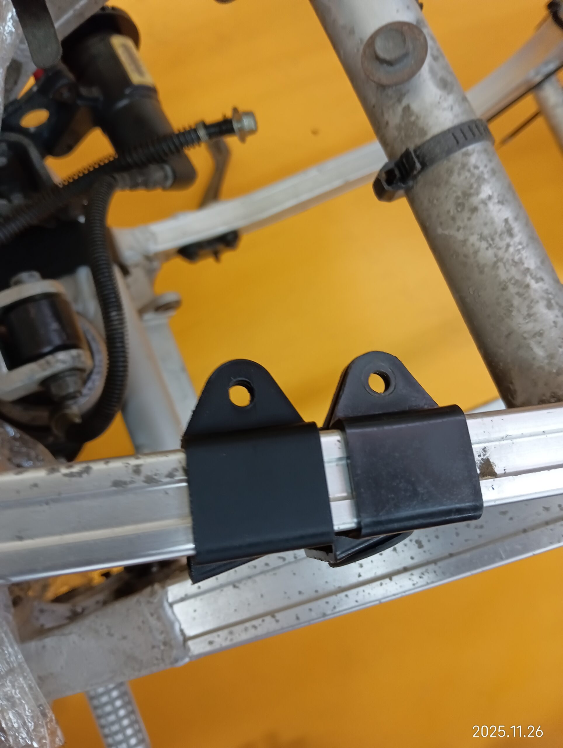 サイドカバー取付用のフレーム側ブラケットです。オリジナル部品と同等に取付可能ですが、ブッシングは付属していません